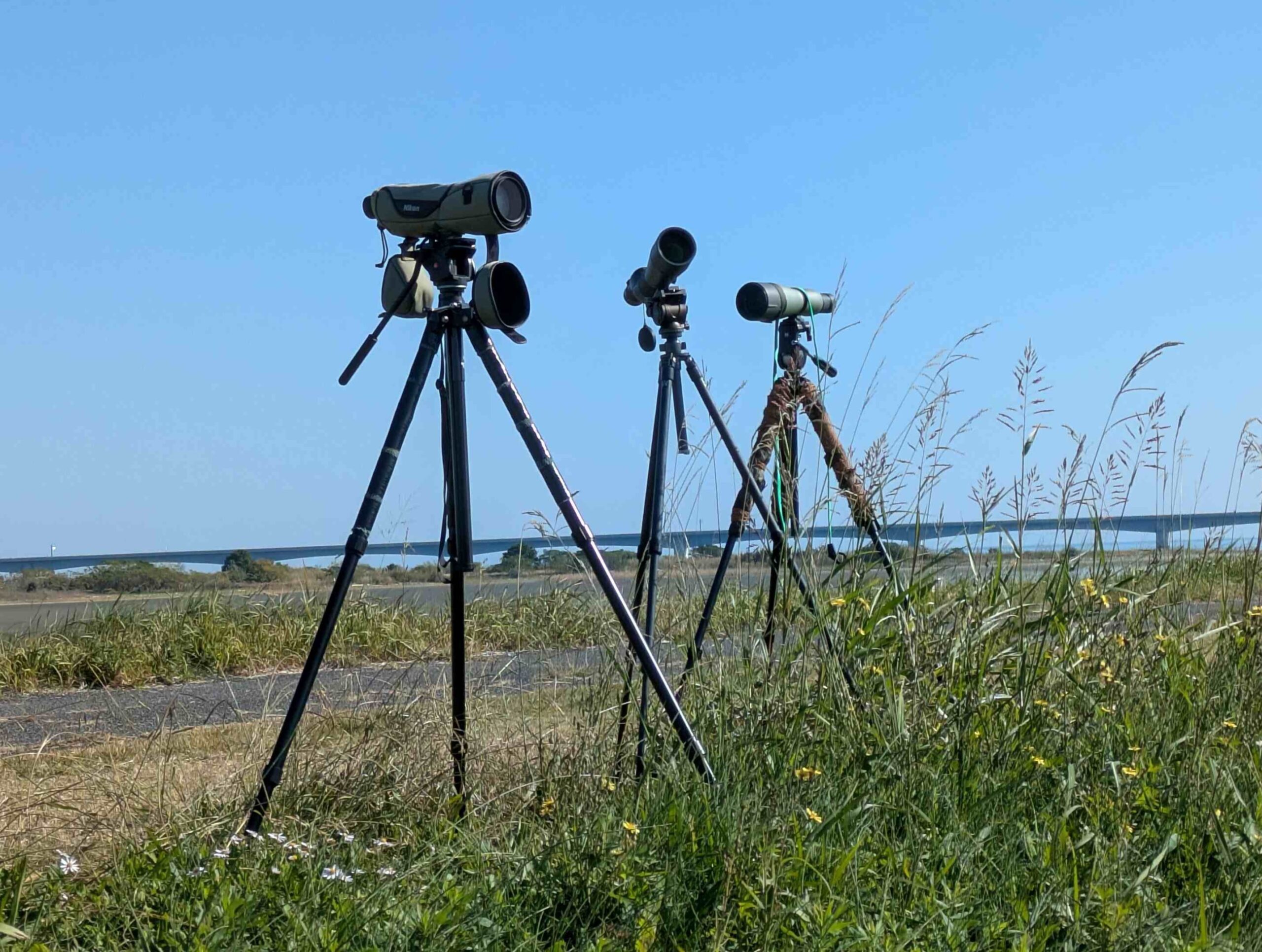 メイン施設の学習舎には、双眼鏡や望遠鏡などの観察用具等を持ち込み、来園者に利用してもらっています。(自分で学習舎のカギを借りて利用する場合は、野鳥の会が持ち込んでいる観察用具は利用できません。)また、湿地は放っておくとガマやヨシが生い茂り、観察路も草で通れなくなり、樹木はツルに覆い尽くされてしまいます。そこで、年に何回か草取り作業をし、観察しやすい環境が保たれるよう努力しています。
